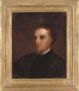 Portrait Of A Parson Wearing Black Costume With Lace Collar And Black Cap