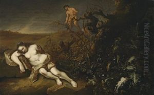 Schlafende Nymphe Von Einem Satyr Beobachtet