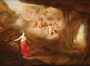 Die Schlafende Diana Mit Ihren Nymphen In Einer Grotte, Im Freien Der Hirt Endymion Und Vier Amoretten