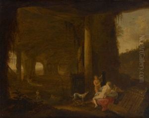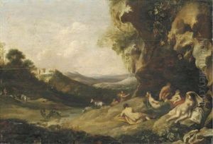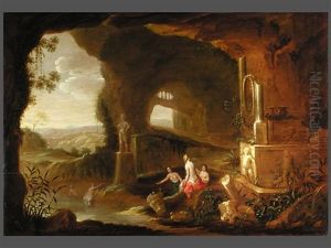 Badende Nymphen In Einer Grottenlandschaft