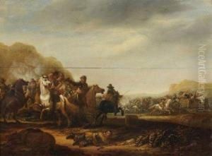 A Battle Scene With An Engagement Between Cavalry And Foot Soldiers