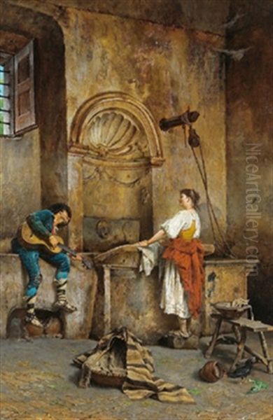 Bring the timeless beauty of Achille Guerra's Ein Standchen Am Brunnen into your home with a handmade oil painting reproduction. Carefully recreated on canvas by skilled artists using traditional techniques, this piece captures the delicate brushwork, subtle light, and vibrant color of the original masterpiece. With museum-level quality and rich texture, it brings elegance and artistic depth to any space. Enjoy free shipping and make this masterpiece a part of your personal collection.