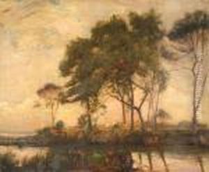 Paesaggio Con Corsod'acqua, Alberi E Figurine