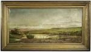 A Travelling Family On Horseback In Anextensive Landscape, With A Cattle Drover In The Foreground