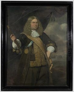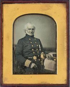 A Naval Officer, Wearing Uniform, Dark Blue Coat With Gold Trimmed Facings And Collar, Gold Epaulettes, Frilled White Chemise And Black Stock.
