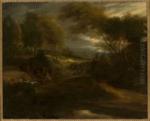 A Wooded Landscape With A Coach Being Ambushed In A Clearing