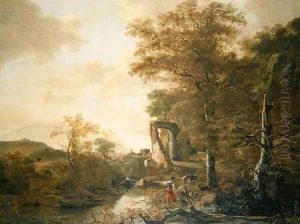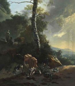 A Cowherd And Cattle At A Ford In A Landscape