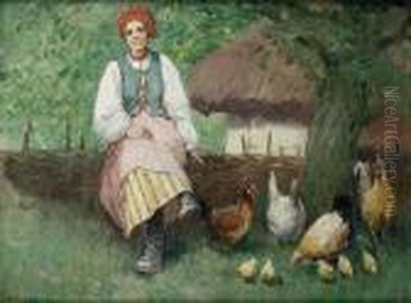 Dziewczyna Karmiaca Kury
