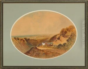 A Winter Street Scene With Horse Drawn Cart And Figures