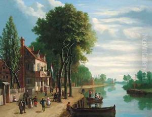 Dutch Men-o'-war And Other Vessels By The Coast With Merrymakers And Other Figures