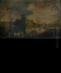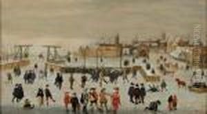 Hollandische Winterlandschaft Mit Eislauferin Und Kolfspielerin