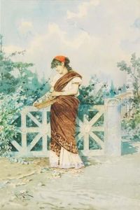 Bring the timeless beauty of Adelchi De Grossi's Corteggiamento into your home with a handmade oil painting reproduction. Carefully recreated on canvas by skilled artists using traditional techniques, this piece captures the delicate brushwork, subtle light, and vibrant color of the original masterpiece. With museum-level quality and rich texture, it brings elegance and artistic depth to any space. Enjoy free shipping and make this masterpiece a part of your personal collection.