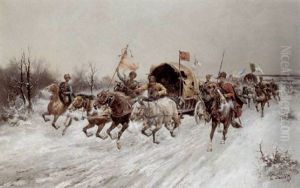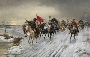 Schwer Bewachte Wagenkolonne In Vollem Galopp