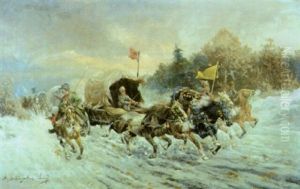Russisk Vinterlandskab Med Kosakker Til Hest