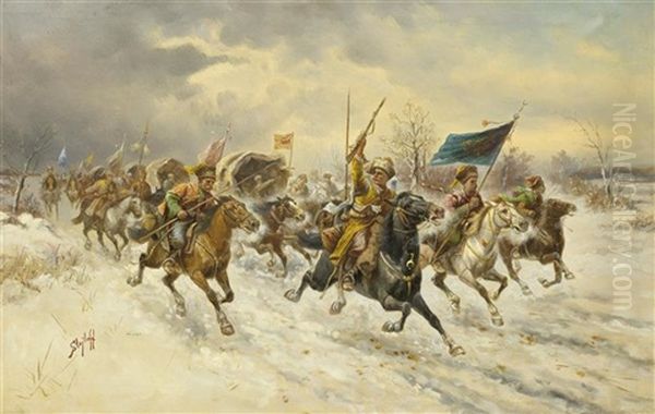 Goldtransport In Sibirien Oil Painting by Adolf (Constantin) Baumgartner-Stoiloff