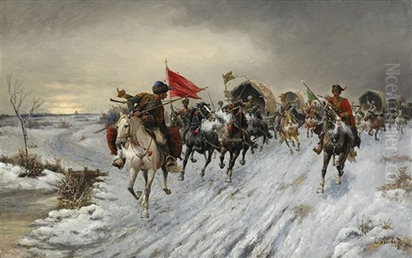 Troika Oil Painting by Adolf (Constantin) Baumgartner-Stoiloff