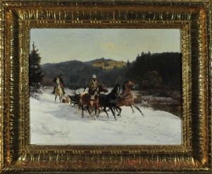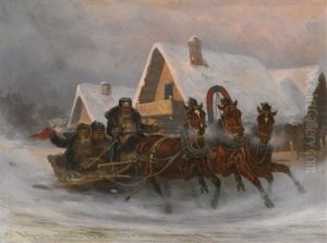 Bring the timeless beauty of Adolf (Constantin) Baumgartner-Stoiloff's Wolfe Verfolgen Eine Troika Im Winter into your home with a handmade oil painting reproduction. Carefully recreated on canvas by skilled artists using traditional techniques, this piece captures the delicate brushwork, subtle light, and vibrant color of the original masterpiece. With museum-level quality and rich texture, it brings elegance and artistic depth to any space. Enjoy free shipping and make this masterpiece a part of your personal collection.