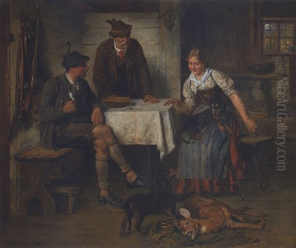 Dirndl Und Zwei Jager In Der Bauernstube