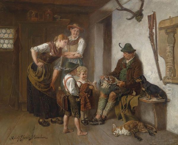 Bring the timeless beauty of Adolf Eberle's Heimkehr Des Jagers into your home with a handmade oil painting reproduction. Carefully recreated on canvas by skilled artists using traditional techniques, this piece captures the delicate brushwork, subtle light, and vibrant color of the original masterpiece. With museum-level quality and rich texture, it brings elegance and artistic depth to any space. Enjoy free shipping and make this masterpiece a part of your personal collection.