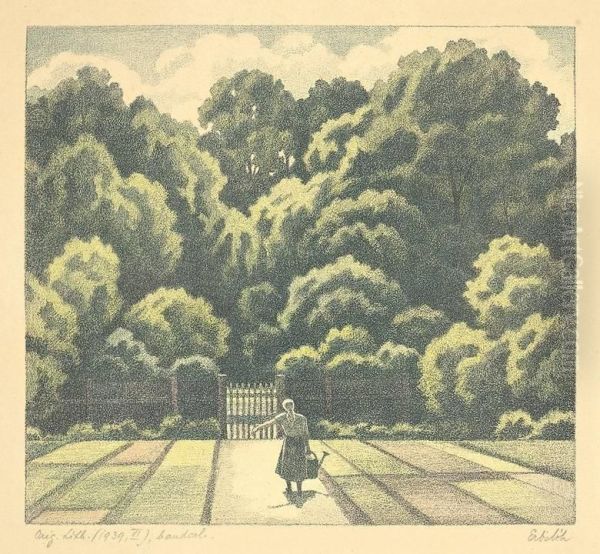 Feldweg Bei Irschhausen, Das Haus Des Kunstlers Im Hintergrund / Frau Mit Giesskanne