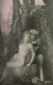 Szenenbild Eines Buhnenstuckes, Im Zentrum Weibliche Figur Mit Entblosstem Rucken