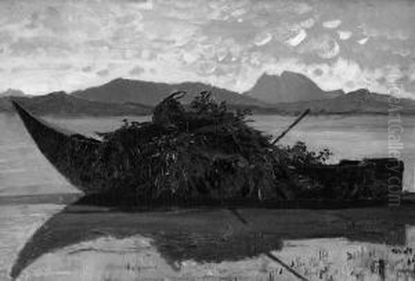 "heukahn Auf Einem Gebirgssee". Rucks. Nachlassstempel Und Bez. Ol Auf Lwd. Auf Karton. 26 X 39 Cm. Rahmen