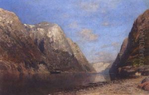 Fjordlandschaft Mit Dampfschiff Oil Painting by Adolf Gustav Schweitzer