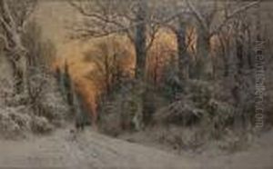 Winterlandschaft Mit Reisigsammlerin Und Jagern