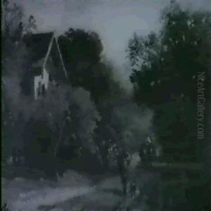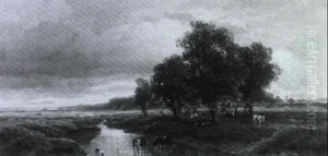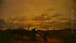 Moorlandschaft Im Abendlicht, Im Vordergrund Figurengruppe Mit Reisigsammlerin