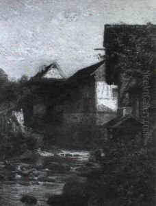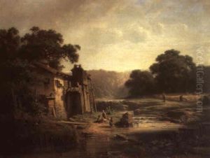 Gebirgslandschaft Mit Heimkehrender Bauerin Und Vieh