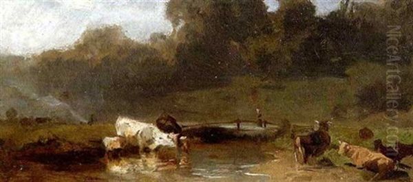 Kuhe An Der Tranke Oil Painting by Adolf Heinrich Lier