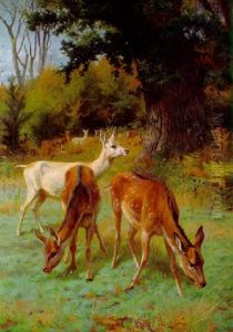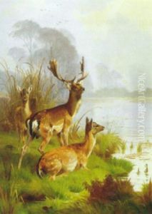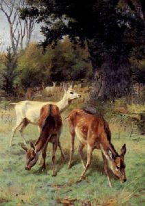 Rotwildrudel Auf Einer Lichtung Unter Ausladender Eiche