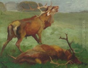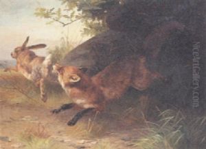 Jagtscene Med To Hunde, Der Har Hentet En Hare
