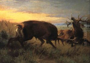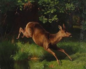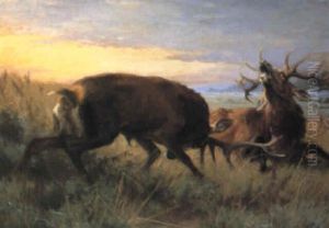 Br+lende Kronhjort Med Sine Hinder Pa Eremitagesletten