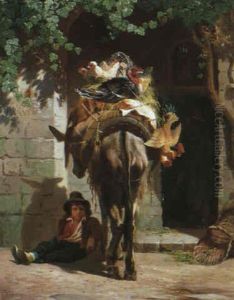 Sydlandsk Gardparti Med Personer, Hons Og Pyntet Hestekaerre Med Vintonder Og En Hund