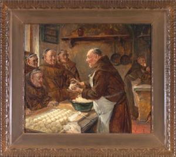 Bring the timeless beauty of Adolf Humborg's In Der Klosterkuche - Ein Monch Erklart Vier Brudern Das Knodel Formen, Wahrend Ein Weiterer Im Hintergrund Heimlich Nascht into your home with a handmade oil painting reproduction. Carefully recreated on canvas by skilled artists using traditional techniques, this piece captures the delicate brushwork, subtle light, and vibrant color of the original masterpiece. With museum-level quality and rich texture, it brings elegance and artistic depth to any space. Enjoy free shipping and make this masterpiece a part of your personal collection.