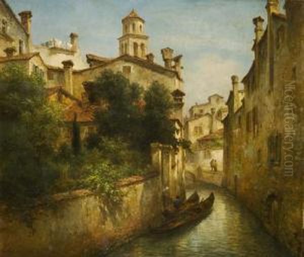 "seitenkanal In Venedig" Mit Gondel-und Figurenstaffage