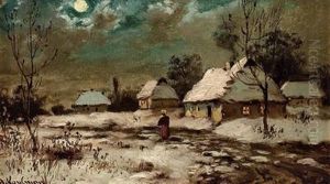 Schafherde Im Birkenwald Bei Mondaufgang Links Unten Sign