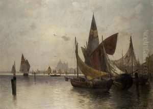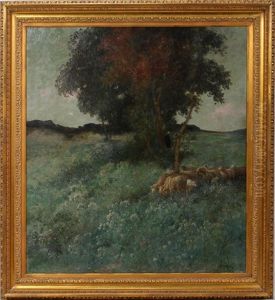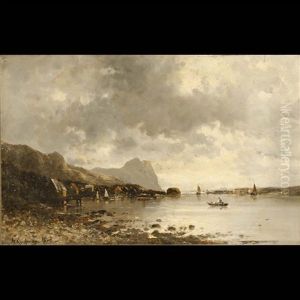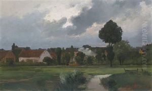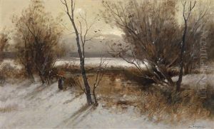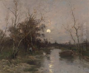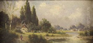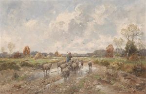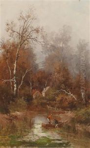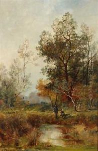 Herbstliche Stimmung Uber Einer Bachlandschaft Mit Figurlicher Staffage