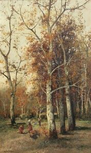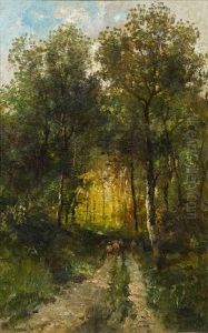 Im Wald Bei Fontainebleau Bei Paris Mit Personenstaffage