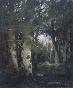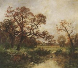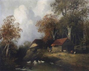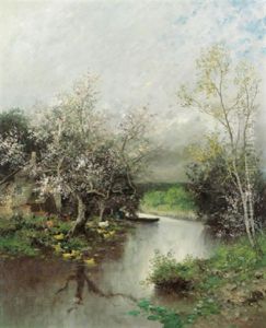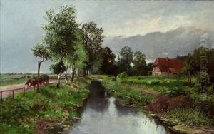 Bachlandschaft Mit Birken Und Fuhrwerk