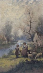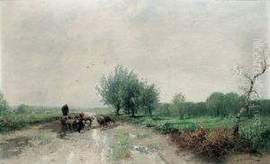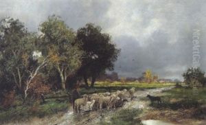 Schafherde Und Hirtin In Den Waldern Von Barbizon