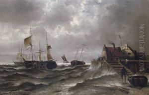 Skandinavische Kustenlandschaft Mit Kustenfischern Auf Sturmischer See