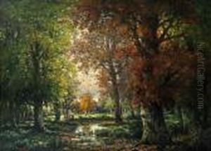 Adolf Kaufmann was an Austrian landscape painter born on October 15, 1848, in Troppau, Silesia (currently Opava in the Czech Republic). He was a part of the later period of the Düsseldorf school of painting, which was characterized by its meticulous attention to detail, intense focus on nature, and interest in atmospheric effects.
