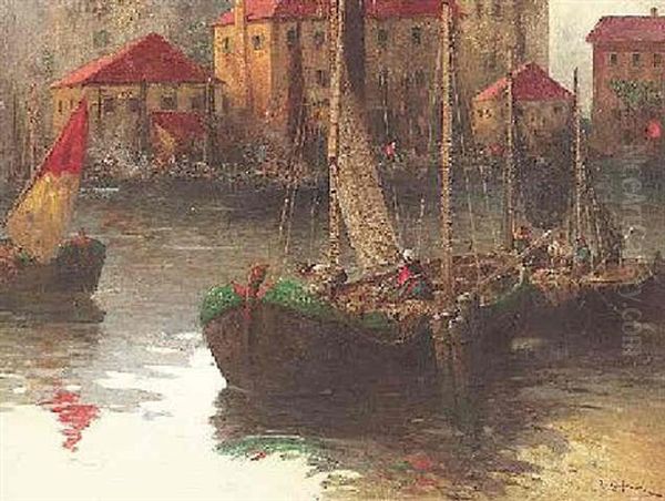 Fischerboote Im Hafen Oil Painting by Adolf Kaufmann