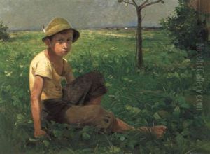 Sitzender Knabe In Einer Weiten Landschaft Oil Painting by Adolf Kaufmann