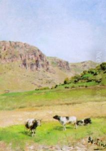 Alpenlandschaft Mit Trinkendem Vieh Und Gansen