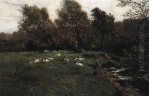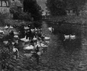 Bauernmadchen Mit Ganseherde Am Bach
