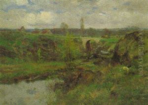 Sommerlandschaft Mit Bachlauf, Von Kopfweiden Gesaumt