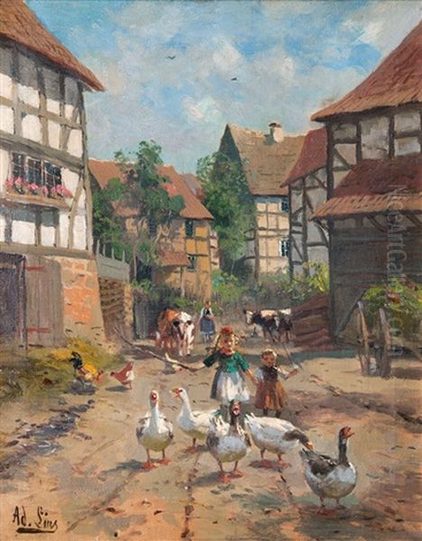 Gansemadchen Auf Hessischer Dorfstrase